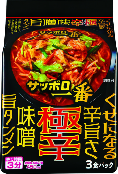 もう一つ、この秋冬に強く推し出していくのが「サッポロ一番」シリーズで史上最も辛いフレーバーの「極辛 味噌旨タンメン3食パック」だ。今春発売され、小売店からすでに支持を集める人気商品となっている。