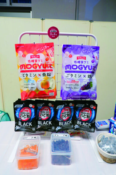 合わせて来年の新商品として、ラカントを使用した菓子も発売する計画だ。ビタミンや食物繊維などの栄養を摂取できる低糖質グミ「モギュイット」、強メントール効果で集中力をサポートする「カロリーゼロのど飴ブラック」の2ブランド。これにより、ラカントシリーズの顧客層の幅も広げていく。