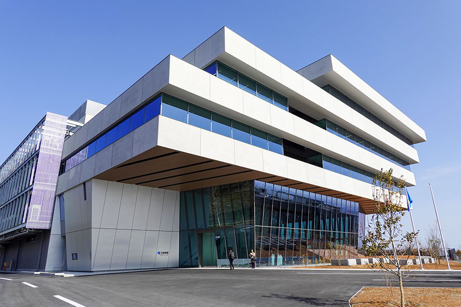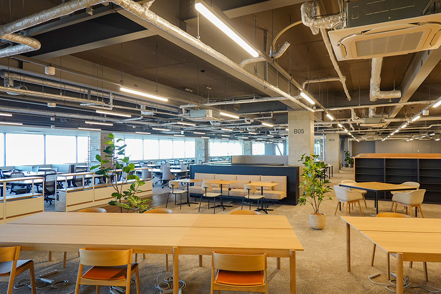 地下1階・地上5階(延床面積3万3323㎡)の建物の中心となる3階に執務エリアを構え、研究開発本部・製造本部・品質安全保証本部の計800名が同一フロアに集う(最大収容人数1400人)。ABW(仕事の内容に合わせて働く場所を自由に選択する働き方)を導入し、座席はフリーアドレスのほか、集中ブースや壁一面のガラスに自由に書き込めるアイデアルームといった多様な空間を用意した。社員が働きやすい環境を構築することで部門の垣根を超えたコミュニケーションを生み出し、技術交流やアイデア創出につなげる狙いだ。
