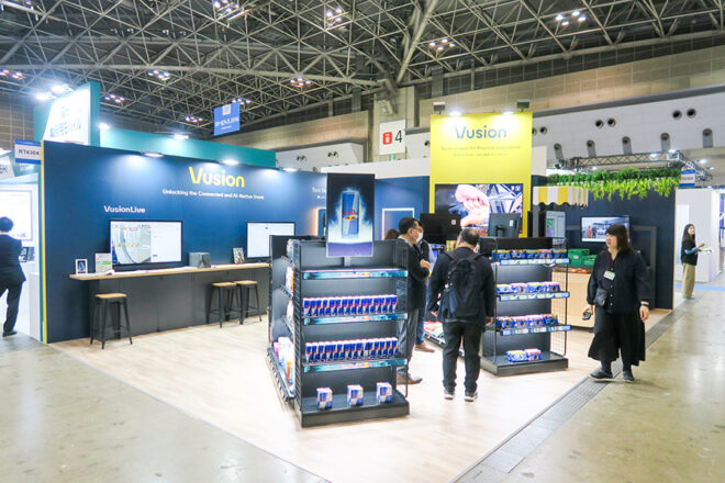 ウォルマートを始めとする大手海外小売業と取り組みを進めるVusion(ヴジョン)は、NRFに続いてリテールテックにも出展(冒頭写真)。そこで披露したのが次世代店舗モデルの「AIネイティブストア」だ。